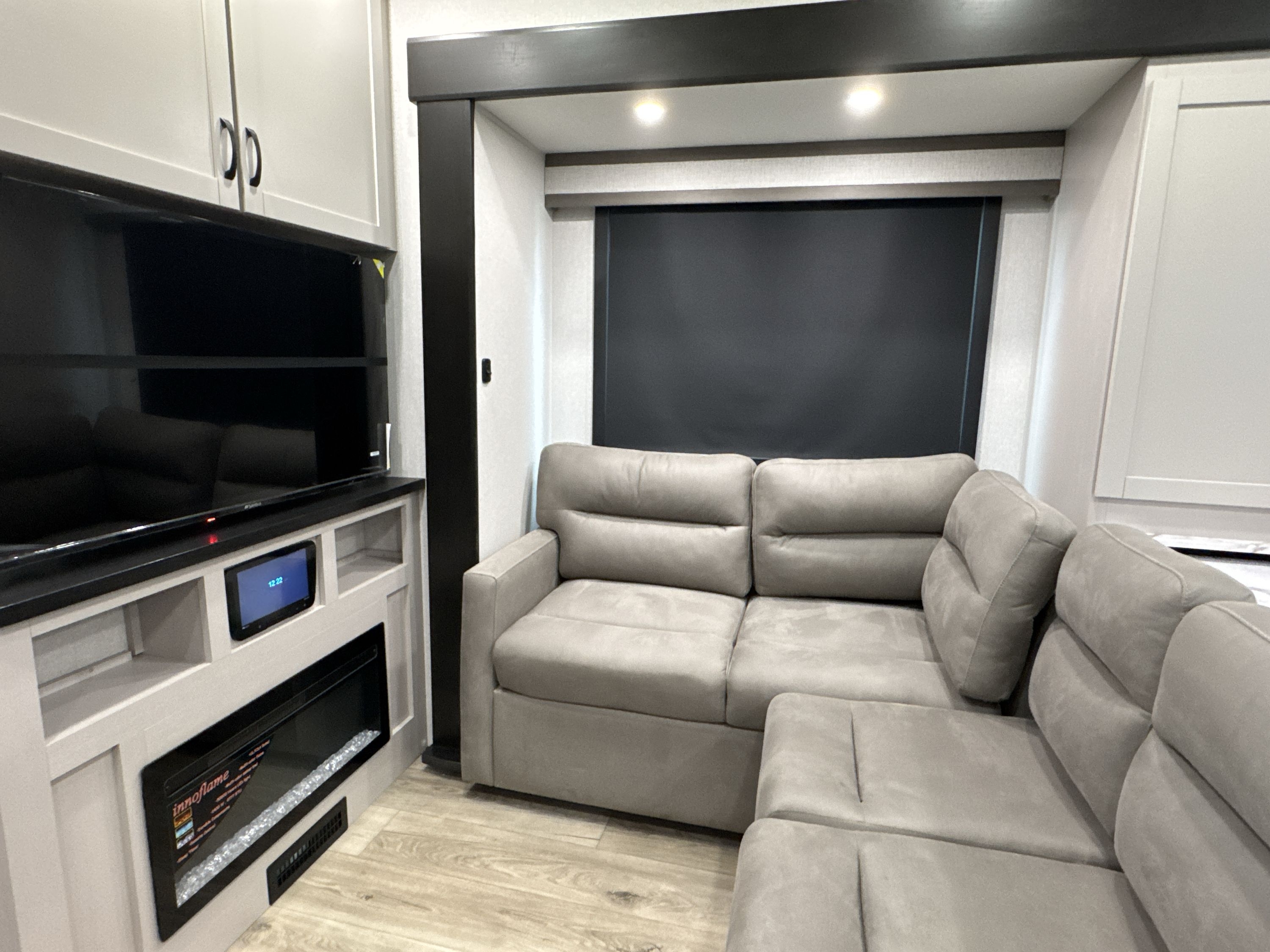 When you have big toys you need a big rig to get them to where you want to go. A big fifth wheel toy hauler is a must, but sacrificing features for space is not. The designers of the Jayco Seismic 395 have coupled space and features into one massively efficient toy hauler. Not only will you get toy space in the 14 linear feet enclosed garage, but you’ll get space for nine to sleep; a solar package; plus, a trio of slide-outs, three ACs and three axles on a 102-inch-wide structural steel body. There’s a ton going on with the Seismic 395! Check out a few of its fabulous features, the 3-D tour, floorplan and more right on this page!
