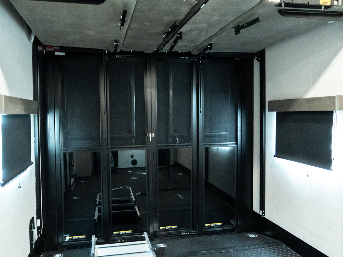 14 feet of enclosed garage linear space, D-rings mounted to the steel frame, and a rear power awning are part of the efficiency of the Jayco Seismic 395.