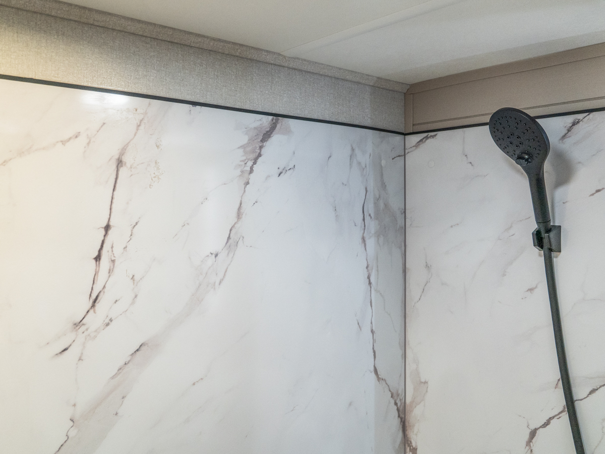 Of course, the Seismic 395 has the ultimate in bathing via this residential-style shower wand in the walk-in shower!