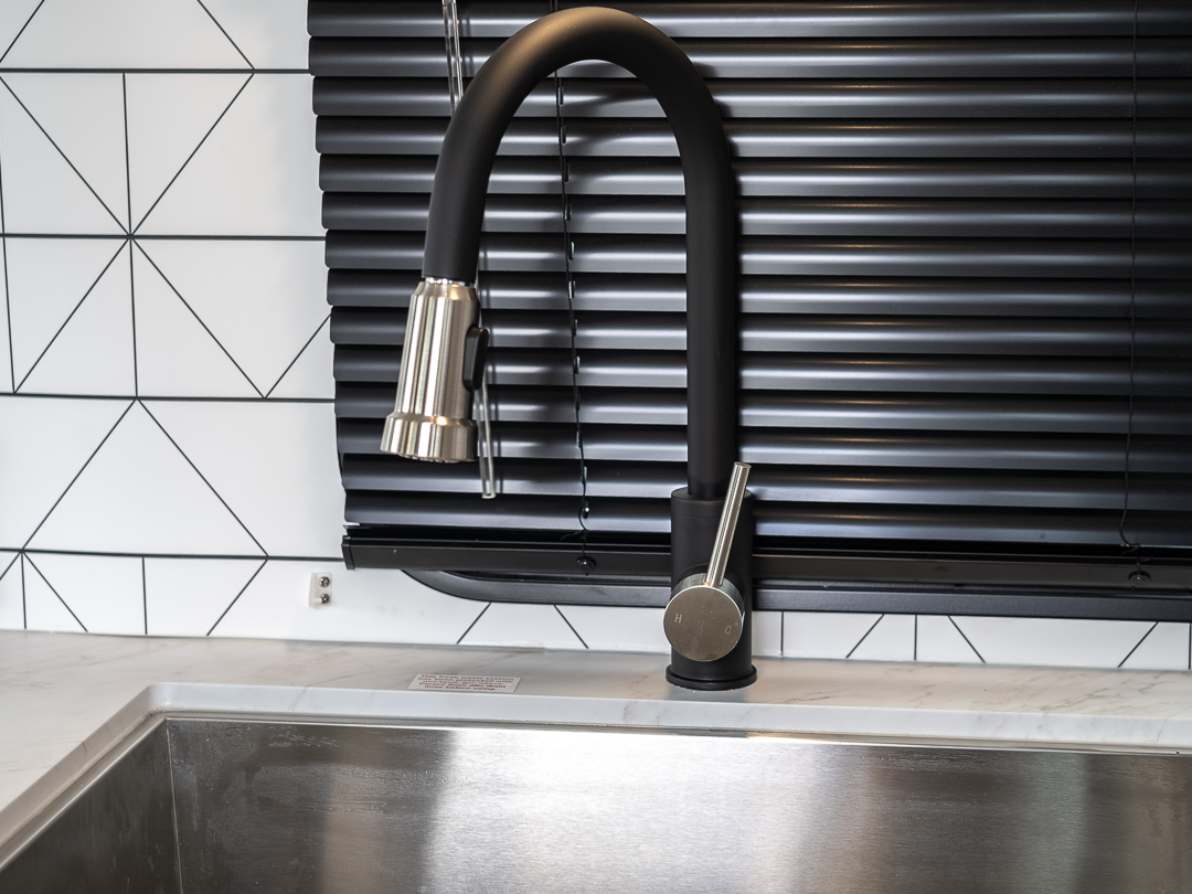 No kitchen is ever fully functional when you’re constantly working against the faucet. This high-rise kitchen faucet with sprayer allows you to get the dishes into the sink without banging into said faucet.