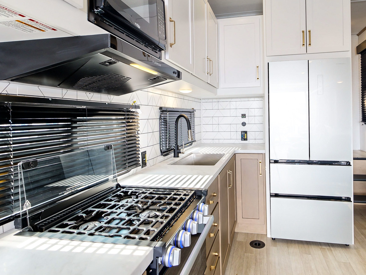 You’ll feel right at home in your Keystone Carbon 340 with this massive fridge. French doors and two freezer spaces below give you a whopping 16.5 cubic feet of chill space! That’s bigger than most fridges at home!