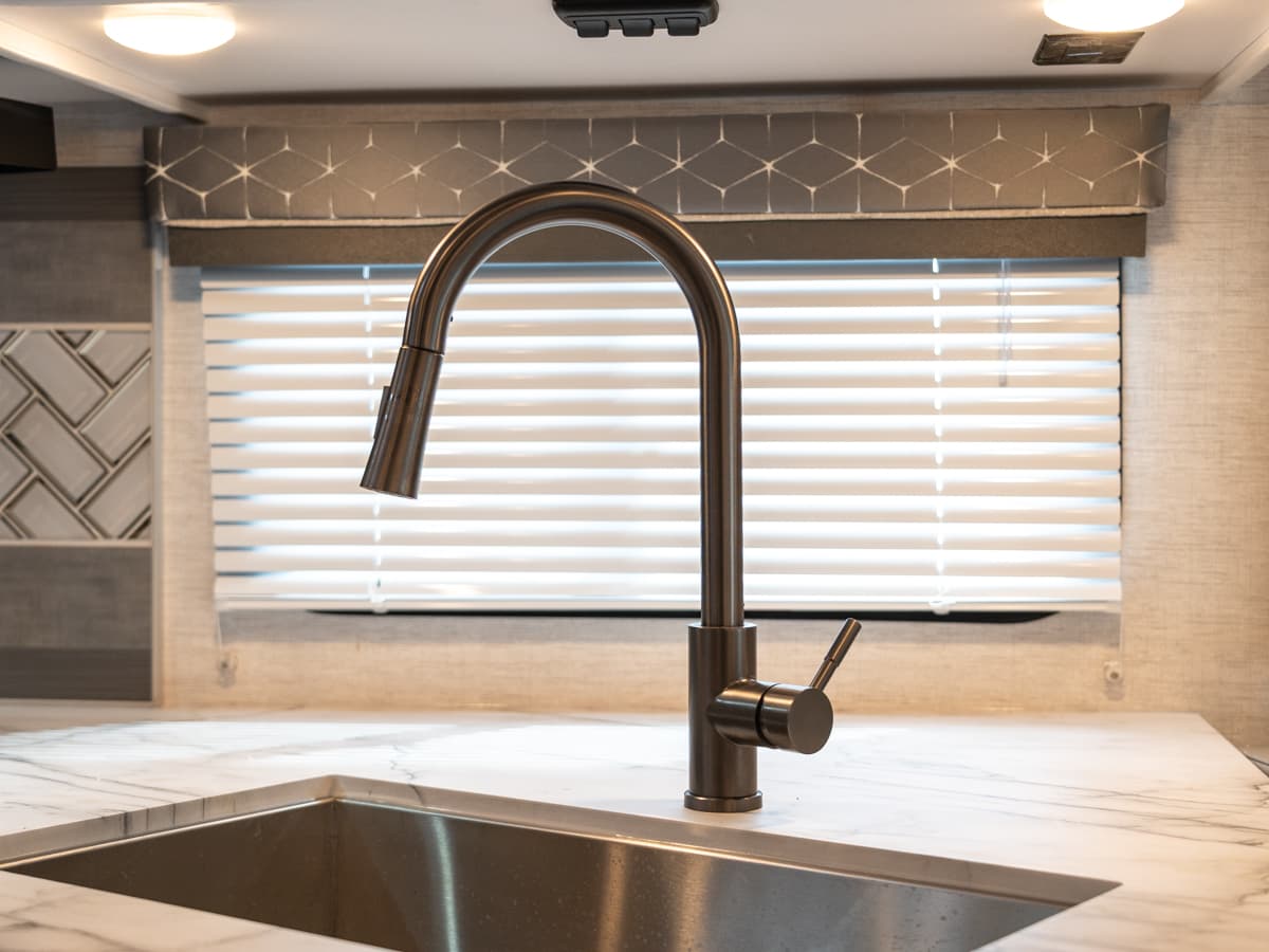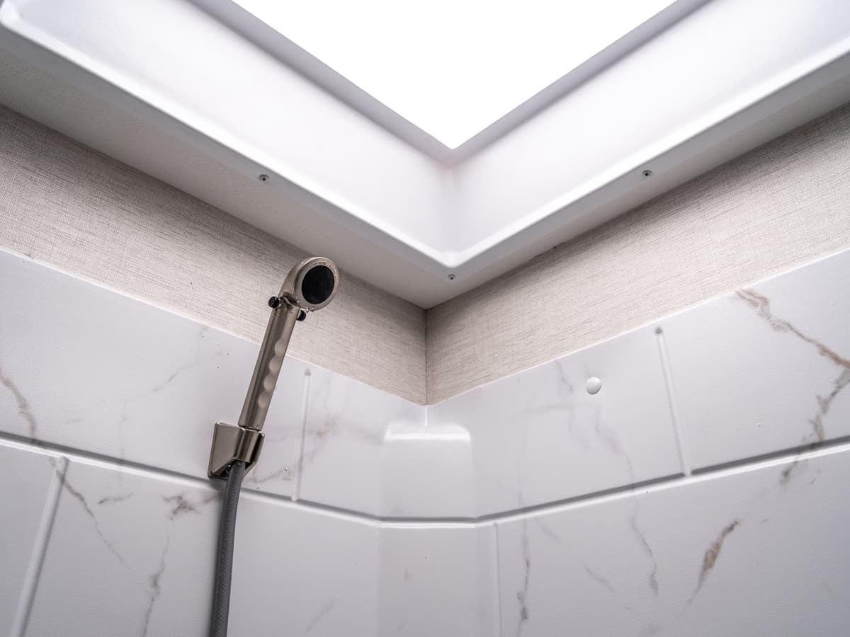 Not only does a skylight situated in the shower give you some much needed natural light, but it adds a few inches to give you the ability to have a relaxing shower. All Freedom Traveler Class models have one!