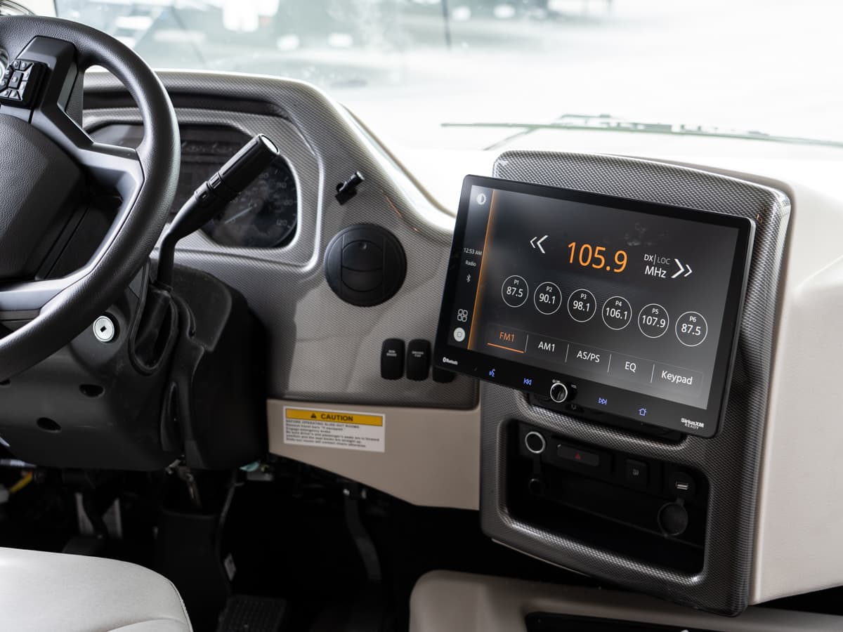 Every Freedom Traveler comes with a 14-inch touchscreen dash radio with Google Android Auto and Apple Car Play! You’ll also get an integrated upgraded living area speaker too. What else? Oh, the back-up monitor is embedded as well.