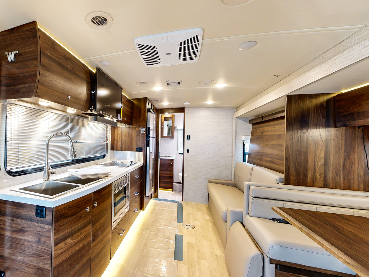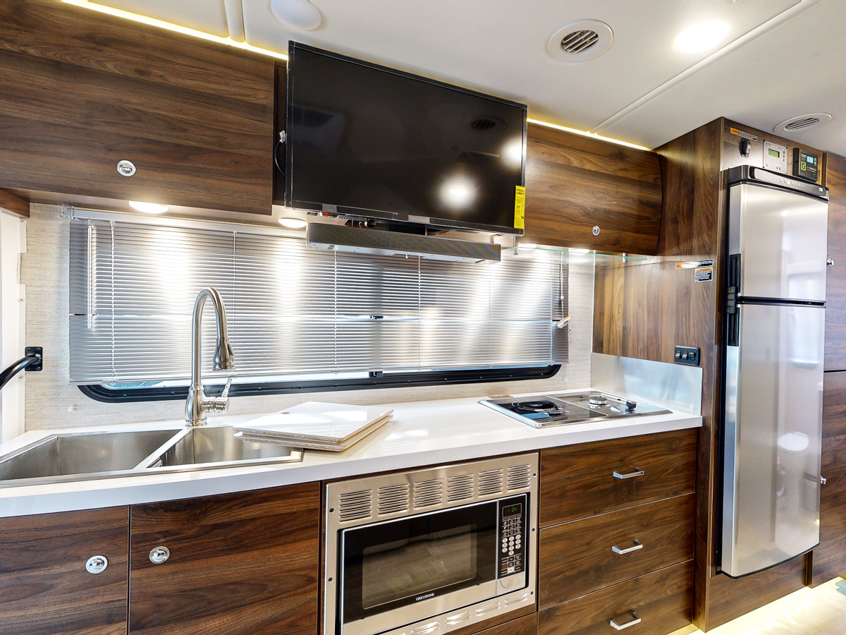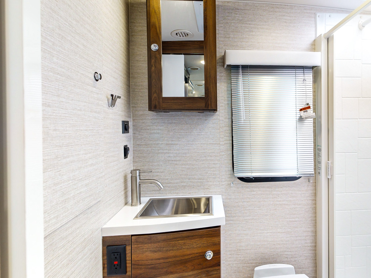 Who doesn’t love to make their RV bathroom as homey as possible? The Winnebago View 24D achieves this with a beautiful residential-inspired stainless-steel vanity sink.